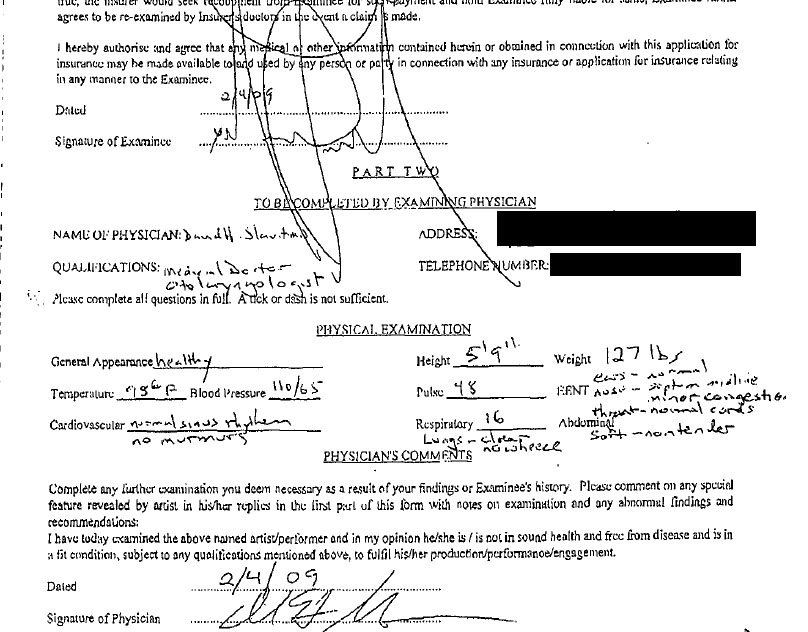 -Want everything in regards to Dr.Slavit’s medical examination of Michael in February 2009